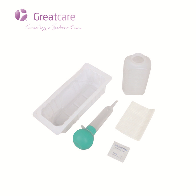 1 bandeja externa de 1000 cc 1 Recipiente Graduado de 500cc 1 seringa de irrigação com bulbo de 60 cc 1 almofada de preparação de álcool 1 almofada impermeável |